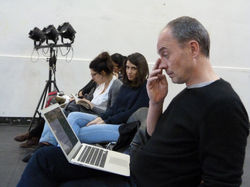 Nous sommes au Hangar, dans la deuxième étape de notre travail avec Robert Cantarella et Stéphane Bouquet, qui aboutira sur une création en 2016.